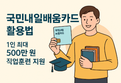 국민내일배움카드는 고용노동부가 주관하는 직업능력개발 지원 제도로, 실업자와 재직자, 특수형태근로종사자(플랫폼 노동자 포함), 자영업자, 대학 졸업예정자 등 다양한 계층에게 최대 500만 원까지 직업훈련비를 지원해 주는 프로그램입니다.